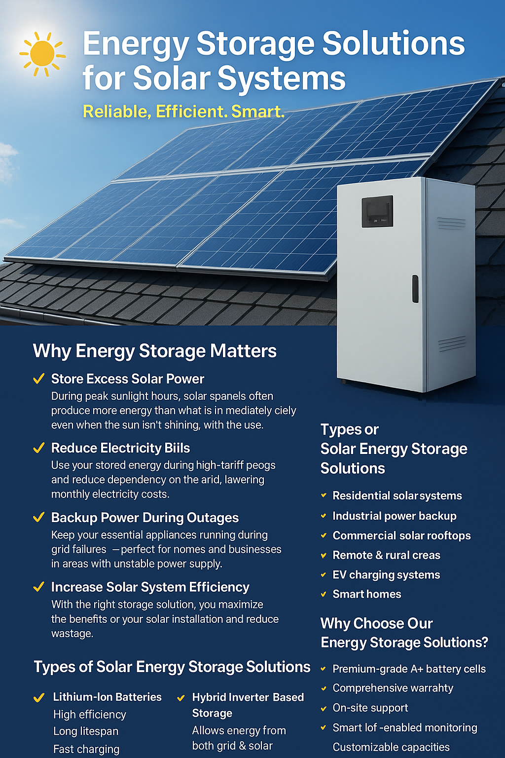 Energy storage is the backbone of a modern solar power system. It ensures that your home or business continues to receive uninterrupted electricity even when the sun isn’t shining. With advanced battery technologies, you can store excess solar energy during the day and use it at night or during power outages
